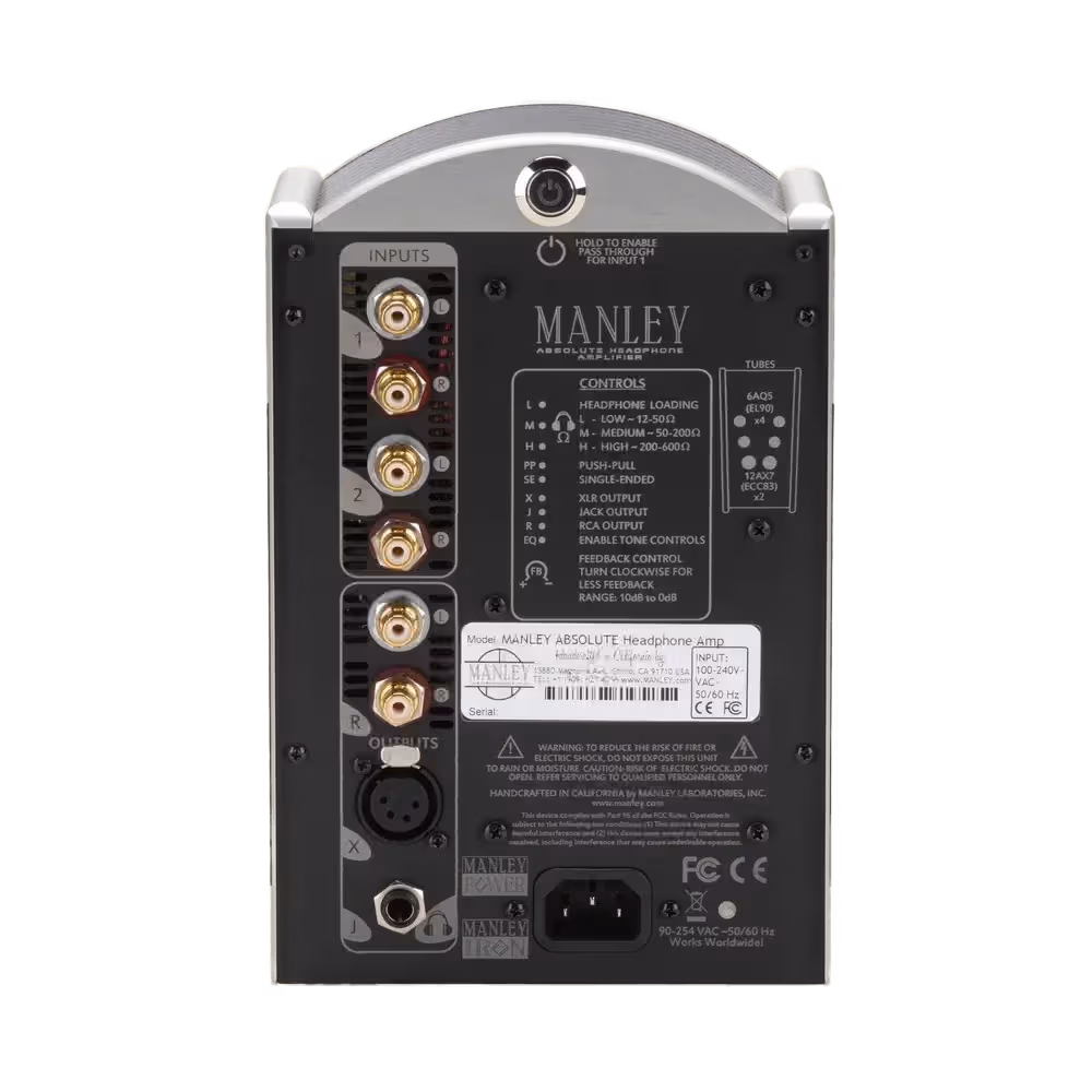 The Manley Absolute Headphone Amplifier is a premium, all-tube component designed to be the ultimate statement in high-fidelity personal listening. Its primary function is to perfectly drive virtually any set of headphones—from low-impedance dynamic models to high-end planar magnetics—with uncompromised power, clarity, and sonic flexibility. It also includes full line-level preamplifier functionality, allowing it to serve as the central control unit for a complete two-channel speaker system.