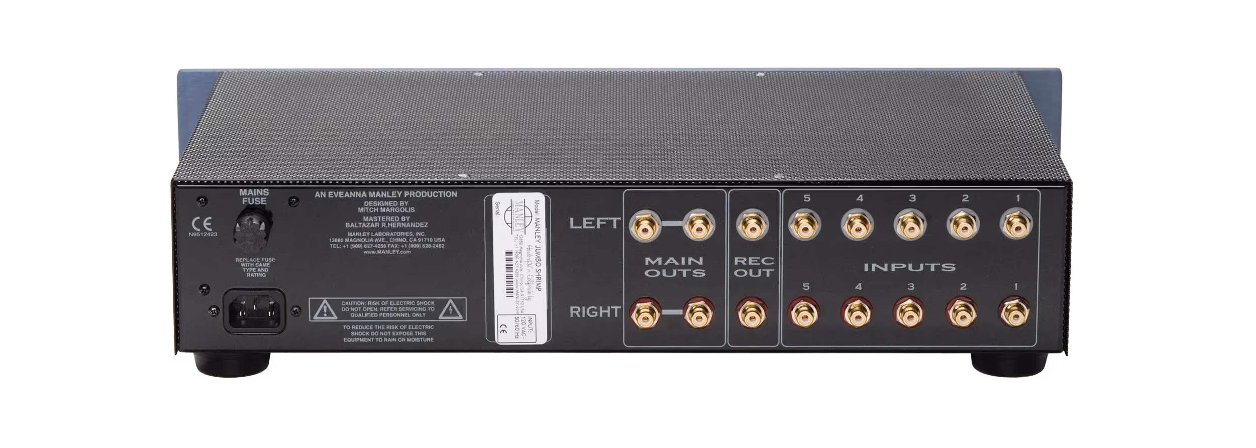 The Manley Jumbo Shrimp is a high-fidelity, line-level preamplifier designed to serve as the control center of an audiophile-grade two-channel audio system.