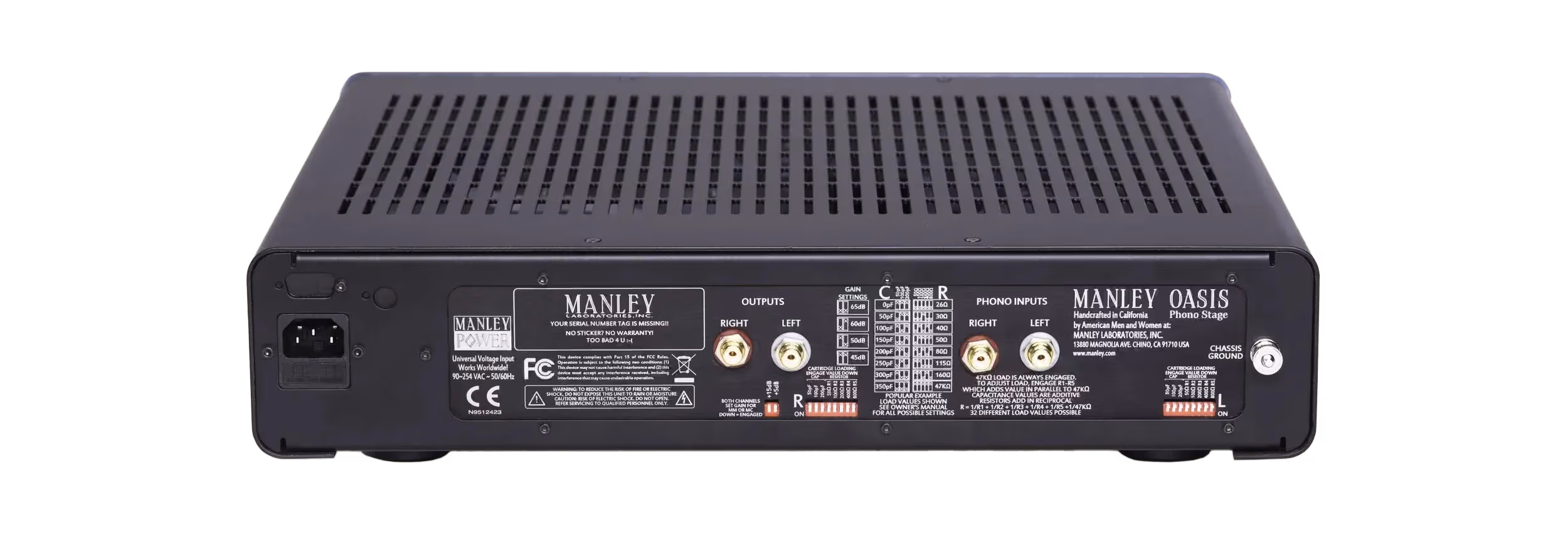 Hand-assembled at Manley's Southern California facility, the Oasis features a CNC-milled aluminum faceplate and robust chassis construction for long-term reliability. Premium components throughout the signal path ensure low noise operation and extended service life. The Oasis embodies Manley's commitment to vacuum tube phono amplification, delivering the dimensional imaging and harmonic accuracy that define reference-grade vinyl playback systems.