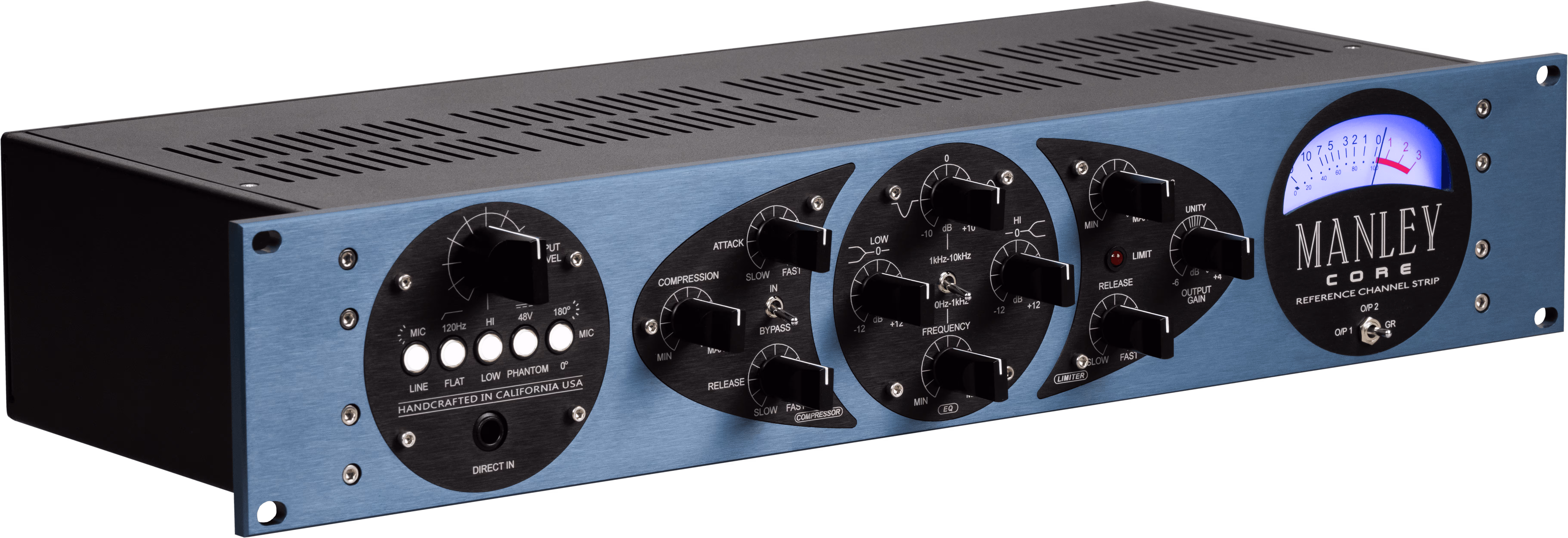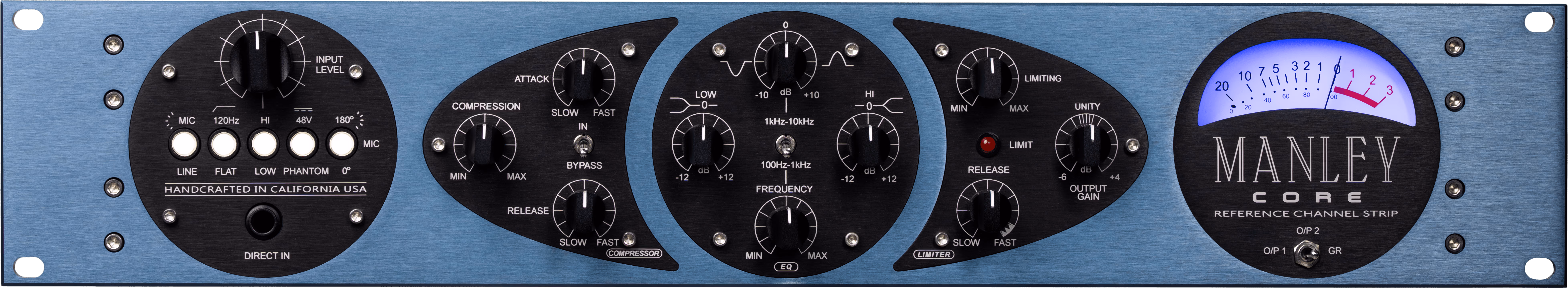 The Manley Core Reference Channel Strip integrates microphone preamp, 3-band EQ, and dual-stage limiting in a streamlined 2U format. Hand-built in California, it combines a custom hand-wound Manley IRON® input transformer, all-tube Class A gain stages, and Manley's acclaimed ELOP electro-optical compression with FET brick-wall limiting. Designed for intuitive operation without compromising any sonic performance, the CORE delivers during tracking and mixing sessions.